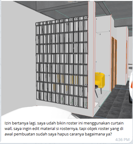 Ketika membuat roster atau objek lain untuk panel curtain wall, walaupun objek asalnya sudah dihapus sebenarnya objeknya sudah tersimpan sebagai custom objek dengan format gsm. Objek tersebut masih bisa diedit namun harus diconvert sebagai morph terlebih dahulu. Jadi misal objek asalnya (yang sudah dihapus) dibuat menggunakan slab tool atau lainnya maka sudah tidak bisa diakses lagi.