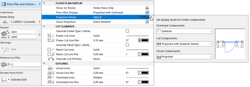 #Overhead Components, untuk mengatur tampilan ketika objeknya berada di atas floor plan cut plane (batas proyeksi lantai), bebas mau dipilih symbolic atau projected.